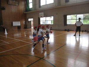 あいにくの雨でしたが、4限目に全体練習を体育館で行いました。
