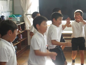 4年生が3年生の振り付けを見て、間違っているところを教えてくれました。