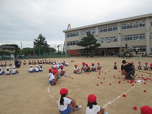 大玉おくりの練習が行われています。昨日までは赤が優勢でしたが、今日は白が盛り返し、同点まで追いつきました。本番はどのような流れになるか分かりませんが、赤にも白にも頑張ってほしいです。