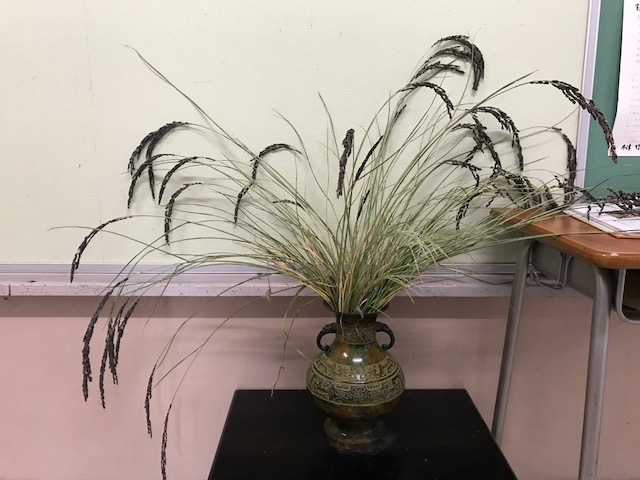 4年生の保護者の方に古代米の稲穂をいただきました。
