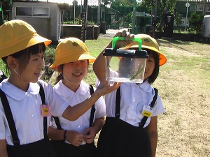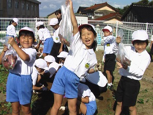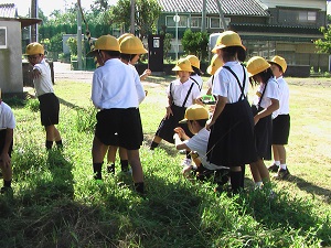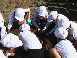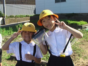 学級園近くから、1年生の元気な声が聞こえてきます。
