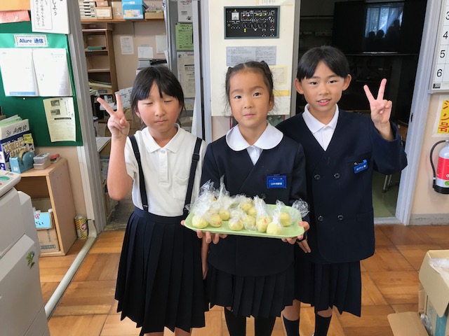 また、さつまいも栽培を教えていただいた畑の先生にも、出来上がったスイートポテトを持って行って感謝の気持ちを伝えます。