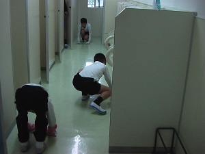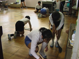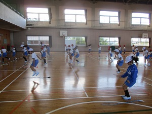 体育館だけでは場所が足りないので、教室や指定された廊下で練習する姿も見られます。