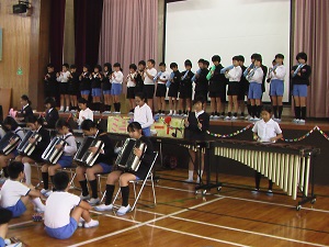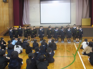 昼休みに体育館に集合して、全校児童で音楽発表を楽しみました。