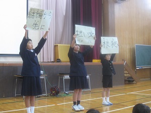 1年生が一生懸命提案してくれたことを全校で守っていきましょう。