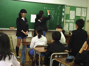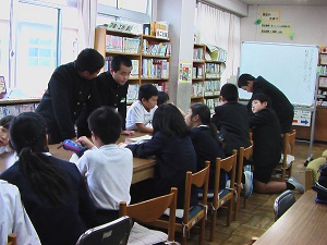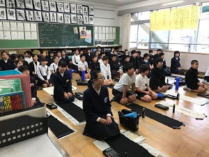 百人一首かるたの先生として、市愛護センターの中島さんが来てくださいました。お昼休みの短い時間でしたが、読み手の中嶋さんの声に集中して練習していました。