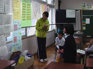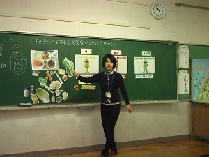 栄養教諭の小鹿山先生をお迎えして、1年生がバランスのよい食事について学びました。