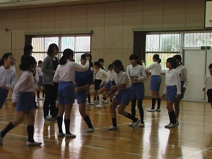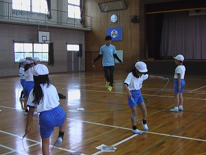 2年生の課題は、後ろ回し跳びです。リズムよく跳ぶためのコツを教えていただき、早速練習です。本番もたくさん跳べるように、がんばってね。