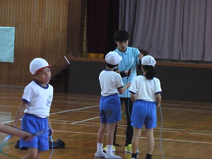 1年生のなわとびでも、見本を見せながら支援してくれています。