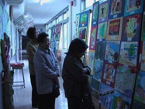 高学年の図画作品展が行われていることをお知らせしたところ、早速見に来てくださる方が…