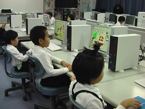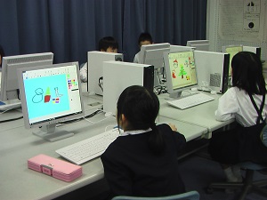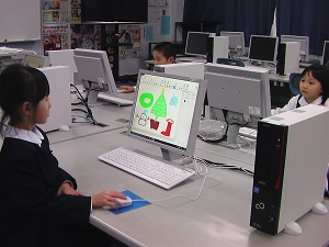 1年生が、上手にマウスを動かしながら絵を描いています。