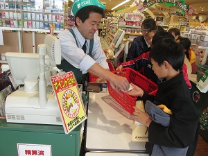 5年生が、家庭科の学習で、「どんたく」に買い物に行きました。