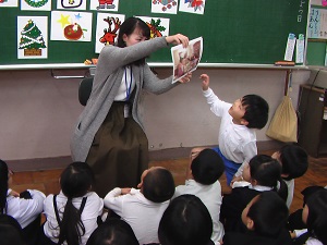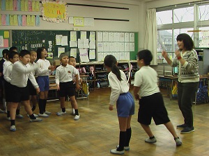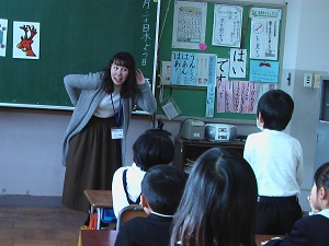 英語に慣れ親しむために、低学年でも英語活動を行っています。