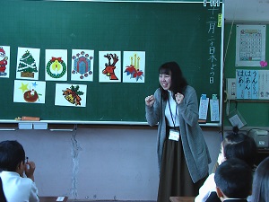 クリス先生のネイティブな英語を聞いて発音したり、アメリカのクリスマスの様子を教えてもらったりと、表情豊かなクリス先生の魅力に引き込まれながら、みんな楽しんでいました。