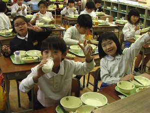 2学期最後の給食。どの子も美味しそうに食べていました。