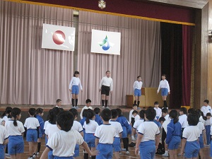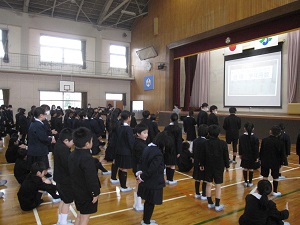 6年生が卒業したため、体育委員会の5年生が新しいリーダーとなり、みんなに指示を出していました。新しいリーダーが育ち、頼もしいかぎりです。