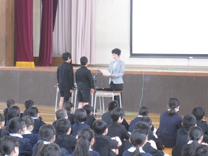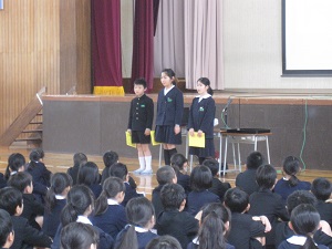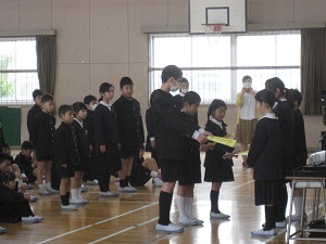 校長先生から、皆勤賞の話がありました。今年度は89人が毎日学校へきました。来年度も楽しい学校、お互いが協力して高みを目指す学校にしていこうと確認しました。