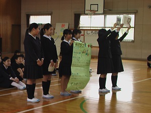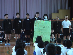 児童会目標は『思いやりの心をもち、笑顔がたえない七塚っ子』