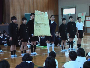 前期企画委員がリードしながら、学校目標である「いじめのない、楽しく学び合う子」になるためには、どうすればよいかと全員で真剣に考えていました。