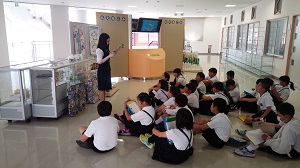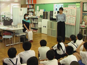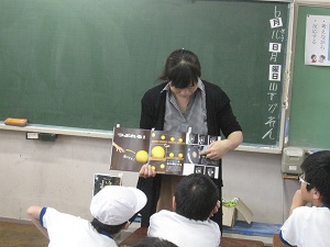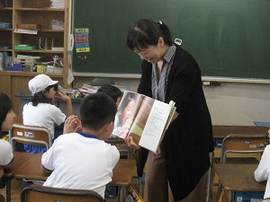 朝の読書の時間に、ぴーかーぶー文庫の坂本さんに読み聞かせをしていただきました。