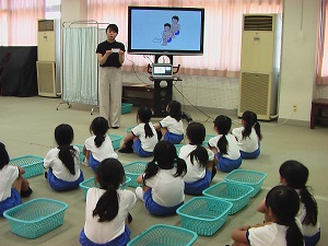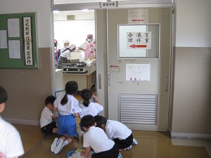 1年生と4年生が耳鼻科検診を行いました。診てくださったのは、はまなすクリニックの寺口先生です。検査の受け方の説明を聞いた後、みんな緊張しながら検査を受けました。