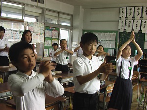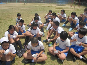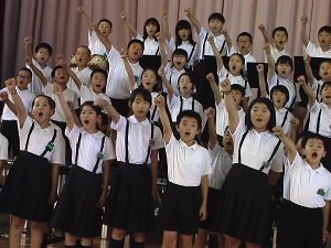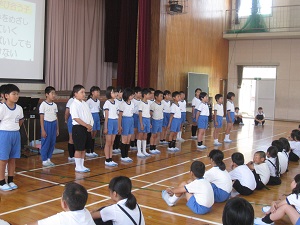 オリンピック・パラリンピック教育実践校である本校にぴったりの選曲でしたが、今月の歌「パプリカ」も今日が最後。1ヶ月間、1・2年生は、運動会を思い出しながら、