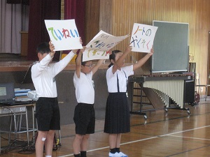 6限目の委員会で,4~6年生が学校をよくするために話し合いました。企画委員会では、七塚小のあいさつについて考え、もっとよくするために全校児童に提案することにしました。