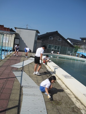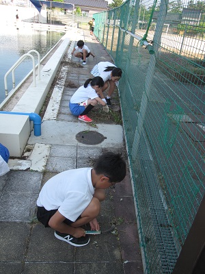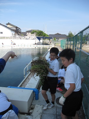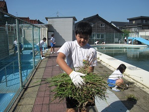 プールの水がなかなか抜けないというハプニングもあり、児童のバケツリレーで水を抜いていきました。大変な作業をどうもありがとう!6年生