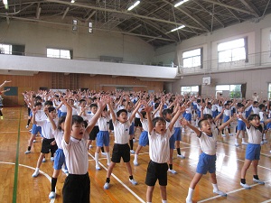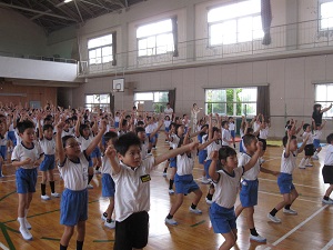 曲はオリンピックの応援ソングであるパプリカです。本校はオリンピック・パラリンピック教育実施校になっているので,ちょうどよい選曲になりました。