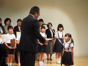長い原稿を覚え,堂々と話す姿がとってもすてきでした。本番でも七塚小の代表として頑張ってほしいです。