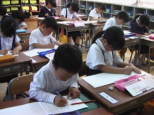 5年生の教室で、今メダカを育てています。今日は、顕微鏡を使って観察をしていました。雄かな雌かな?卵は大きくなっているかな?など、視点を持っての観察です。顕微鏡も上手に使えるようになり、スケッチも丁寧になってきました。