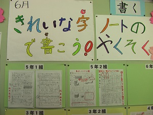 児童玄関前に、よいノートのお手本が掲示されていますので、明日の授業参観の際には、ぜひご覧下さい。