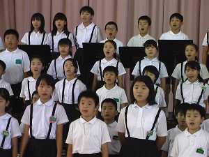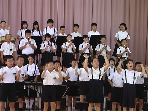 曲は「パプリカ」です。練習した成果を発揮し、すばらしい歌声と合奏を響かせてきました。
