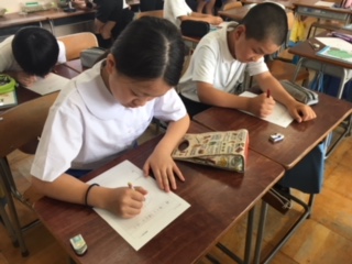 まなびいず委員会から、学習目標「ていねいな字で書こう」が提案されました。先月までの「話をよく聞く」と合わせて頑張ってほしいです。