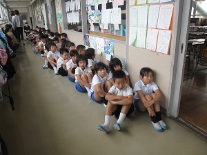 2限目の終わりに、予告なしの避難訓練を行いました。