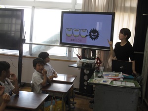 七塚小には虫歯になっている児童が多いため,虫歯にならないようにすること、そして、虫歯になったらすぐに歯医者さんへ行くことを合わせて指導しました。