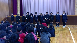 昨日で二学期が終わり,児童は今日から冬休みです。終業式では児童の頑張りの表彰・校長先生からのお話・猪尾先生とのお別れ式・冬休みの生活の確認などを行いました。