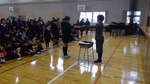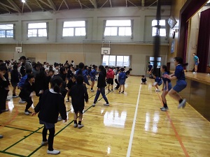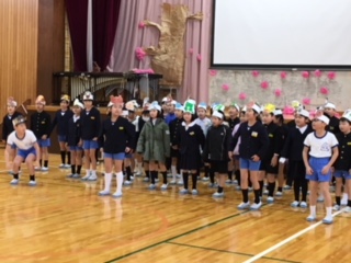 朝の体育館は冷えていましたが、みんなでげんきっず体操をしたり、体を動かすことで、体が温まりました。