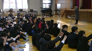 開会では、河北台中の校長先生から、学びの基礎を身につけて入学してほしいとお話がありました。皆、背筋を伸ばし、真剣な表情で聞いていました。
