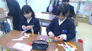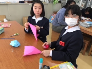 お世話になった6年生へ一人一人が感謝のメッセージを持ち寄り、さらに、6年生とのランチで使用する飾り作りを行いました。5年生が中心となって計画を立て、活動できました。素敵な6年生とのお別れ会にできるとよいですね。