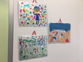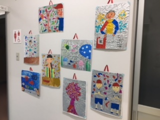 体育館通路の廊下には、3年生児童の作品が掲示され、通る子ども達を楽しい気持ちにしてくれます。
