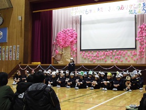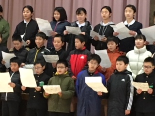 4年生は「ひまわりの約束」を合奏しました。学習で覚えたパワーポイントで作ったプレゼンを披露してくれました。4年生からは来年高学年として頑張ろうとする抱負も聞くことができました。