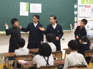 1年生は「だってだっての6年生」で学習したことをいかしてかわいい演技をしました。