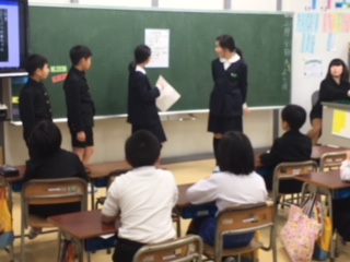 授業体験では、七塚小学校と外日角小学校の児童が、4クラスに別れ、同じ教室で体験しました。中学校の先生方の専門的な指導の中、他の学校の児童と同じ教室で学ぶ緊張感を感じながら、子ども達は真剣に学習に臨んでいました。