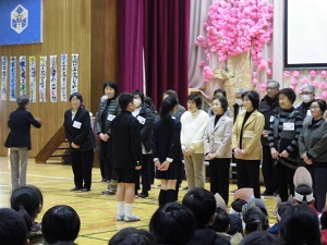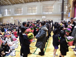 七塚小学校の学習のために,ボランティア等で協力いただいた方に来校していただき,日頃の感謝を伝えました。また,代表の児童から感謝の気持ちをこめた花をおくらせていただきました。