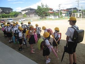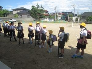 集団下校訓練を行いました。いざというときに,落ち着いて素早く行動できるように,素早く・黙って行動できるように訓練しました。児童は,緊張感をもって,素早く高学年の指示にしたがって行動していました。