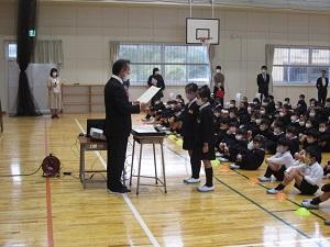 次に、校長先生のお話があり、今までの学校生活のがんばりをふり返りました。