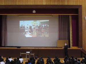 5限目に2年生が集まり、水上先生に自己紹介をしたり、聞きたいことを質問したりしていました。