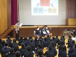 アナウンサーの方をお招きし,1年生が美しい日本語講座を行いました。