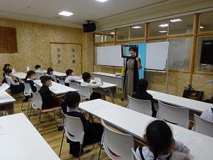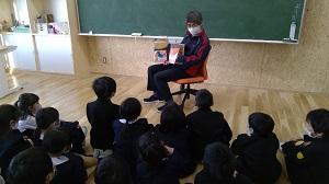 今日は学級担任とは違う先生が教室にやってきて読み聞かせを行いました。